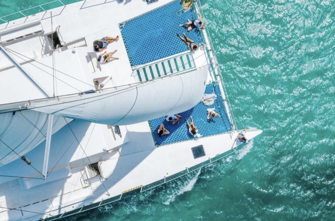 As the island gently wakes, set sail into calm turquoise waters aboard our custom-built catamaran where the breeze is warm, the music is mellow, and the morning sparkles with bubbles and blue.