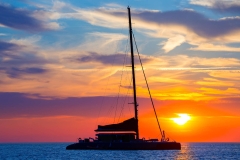 As the day sighs into dusk, the Caribbean sky sets the stage for nature’s most breathtaking show. Step aboard our custom-built catamaran, where the salt-kissed breeze, swaying sails, and soft music promise a moment of peace, connection, and celebration.
